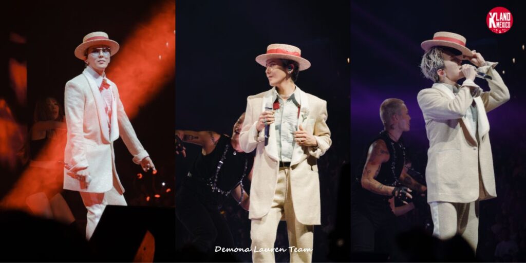 En cuanto a cifras, este concierto marca su tercer álbum en solitario y su primer comeback en ocho años. Dos estatuas en el escenario encarnan su evolución: una representa su yo de 2009, la otra el de 2025. Habla de BIGBANG con ternura y suelta una bomba: un comeback por los 20 años del grupo en 2026. Las bocas se abren y se cierran: “¿Cómo dice?” La arena estalla. Folks, it’s getting real.