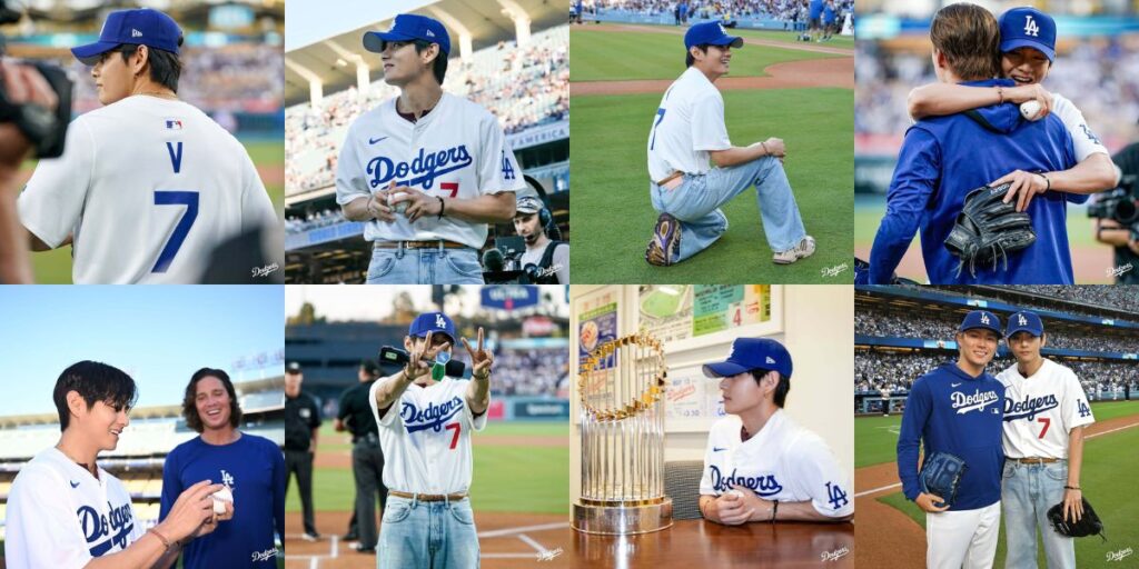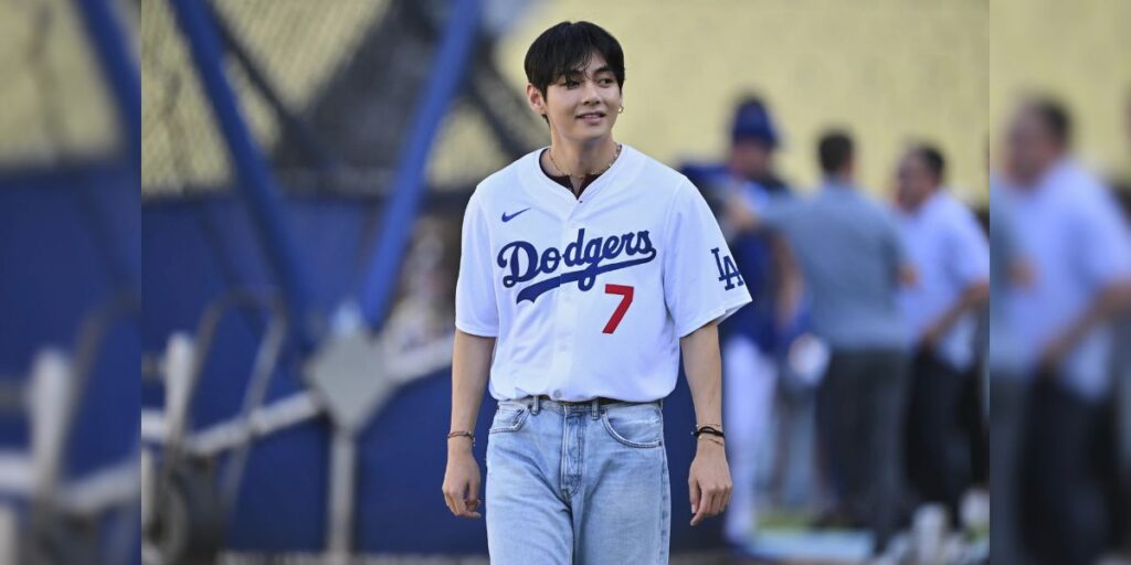 Taehyung, actualmente en Los Ángeles para preparar el regreso de BTS, aprovecha cada ocasión para mantener ese vínculo directo con el público internacional. Con la camiseta azul, el número 7 en la espalda, saluda al lanzador Yoshinobu Yamamoto antes de lanzar la bola con seguridad. En las gradas, los fans levantan pancartas, las redes sociales arden: el K-pop ya no es un “fenómeno”, sino una realidad cultural arraigada en la vida cotidiana californiana, no solo como folclore, sino como sub-sector de la cultura… irónicamente estadounidense.