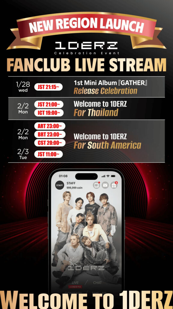 Otro punto a destacar: la app oficial del fanclub de ONE OR EIGHT, “1DERZ”, ya está disponible en cuatro nuevos países: Argentina, Brasil, Tailandia y México. Para marcar esta expansión, se lanza una campaña de preinscripción, acompañada de sesiones de live streaming. Esta apertura antecede la gira “ONE OR EIGHT 1st LIVE TOUR -GATHER-” y busca ofrecer una experiencia más personal y cercana al universo del grupo, con preventas de boletos, contenido exclusivo, transmisiones en vivo y otros beneficios para miembros.